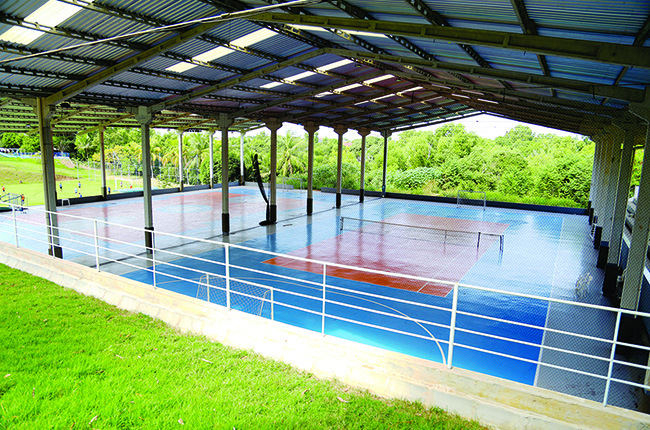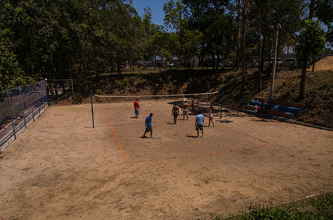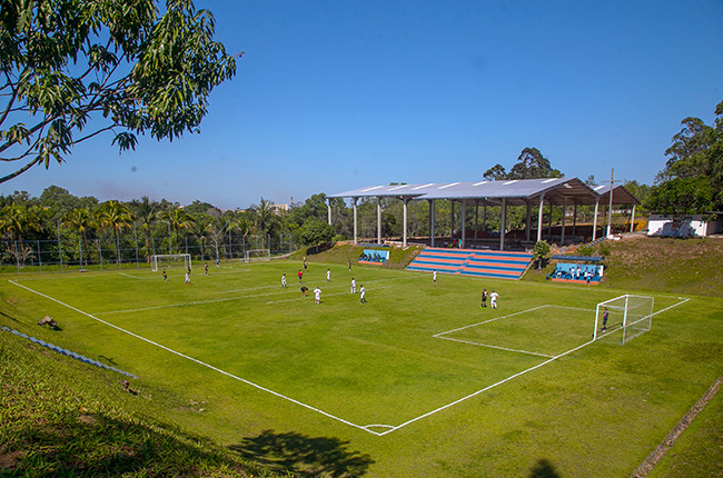 São dois campos de futebol soçaite, campos de areia para futebol e vôlei, quadras poliesportivas, campos de bola de pau, além de opções como o salão de jogos e a trilha ecológica.