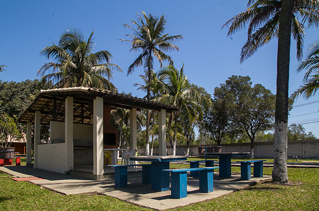 São seis quiosques independentes espalhados pela área verde no Clube. Cada unidade tem uma churrasqueira, caixa térmica para bebidas, pia, mesas e bancos fixos.