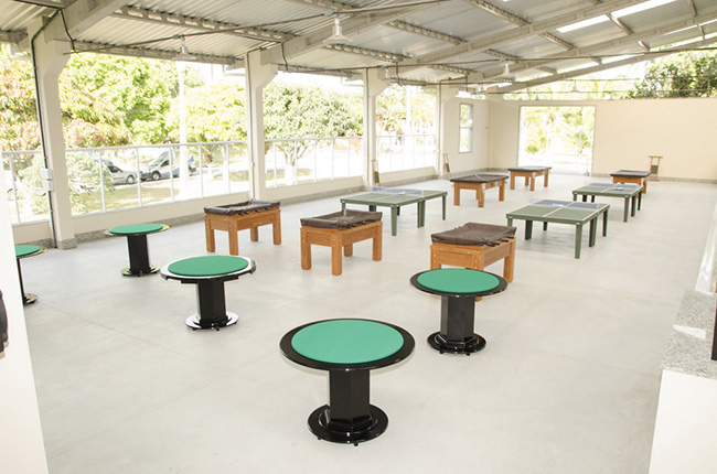 Espaço privilegiado para realização de festas, com 220 metros quadrados, fica na área central do Clube, sendo estruturada com banheiros e palco para shows.